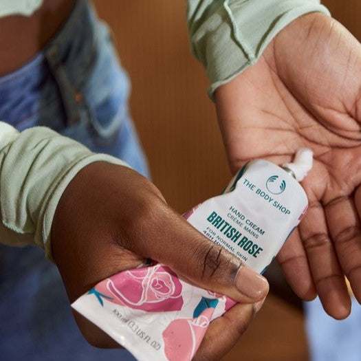 Onze veganistische handcrème bestaat nu voor 93% uit natuurlijke ingrediënten, waaronder extracten van met de hand geplukte rozen uit Groot-Brittannië en handgemaakte sheaboter uit Ghana, die via eerlijke handel is verkregen. Het verzorgt je nagels en nagelriemen en houdt je huid 48 uur lang gehydrateerd.
